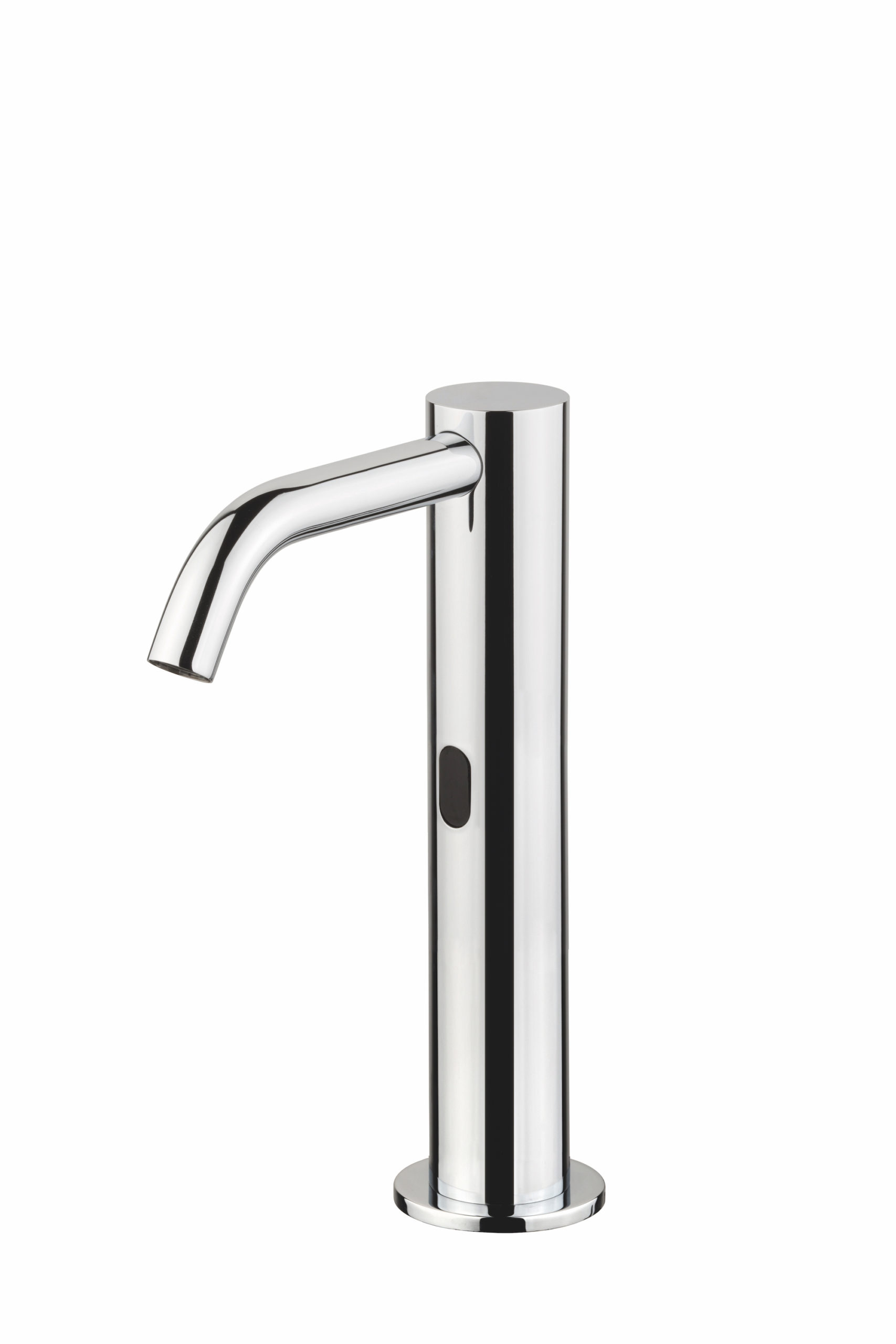 Robinet simple de lavabo à vasque à corps et bec hauts, à commande électronique et alimenté sur secteur