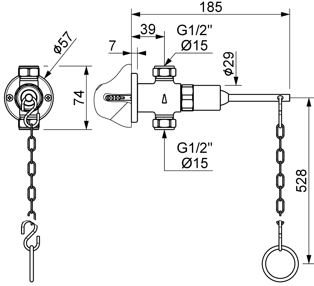 Robinet simple de douche temporisé à 15-25 secondes à commande à chaîne